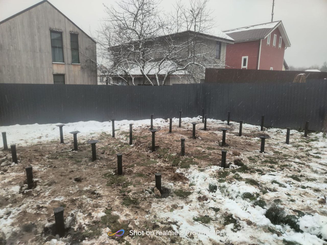 Пример выполнения работы компанией "Сваекрутов" — монтаж свайно-винтового фундамента для строительства бани в Московской области (г. Внуково)
