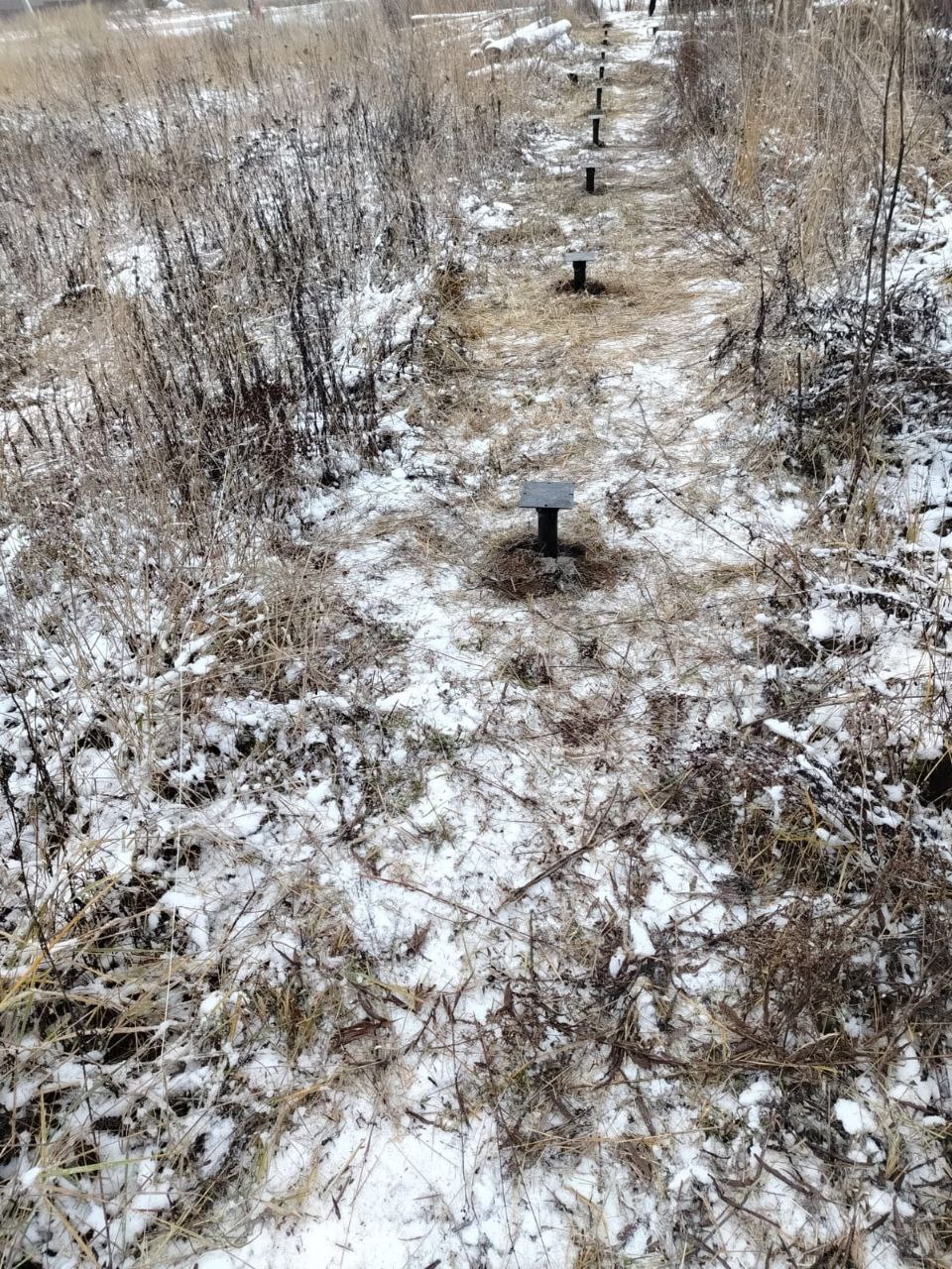 3. Установка оголовков: После установки свай, на каждую из них был закреплен оголовок, который обеспечит надежную опору для столбов забора. Это важный этап, так как от точности и качества крепления зависит прочность и долговечность конструкции.